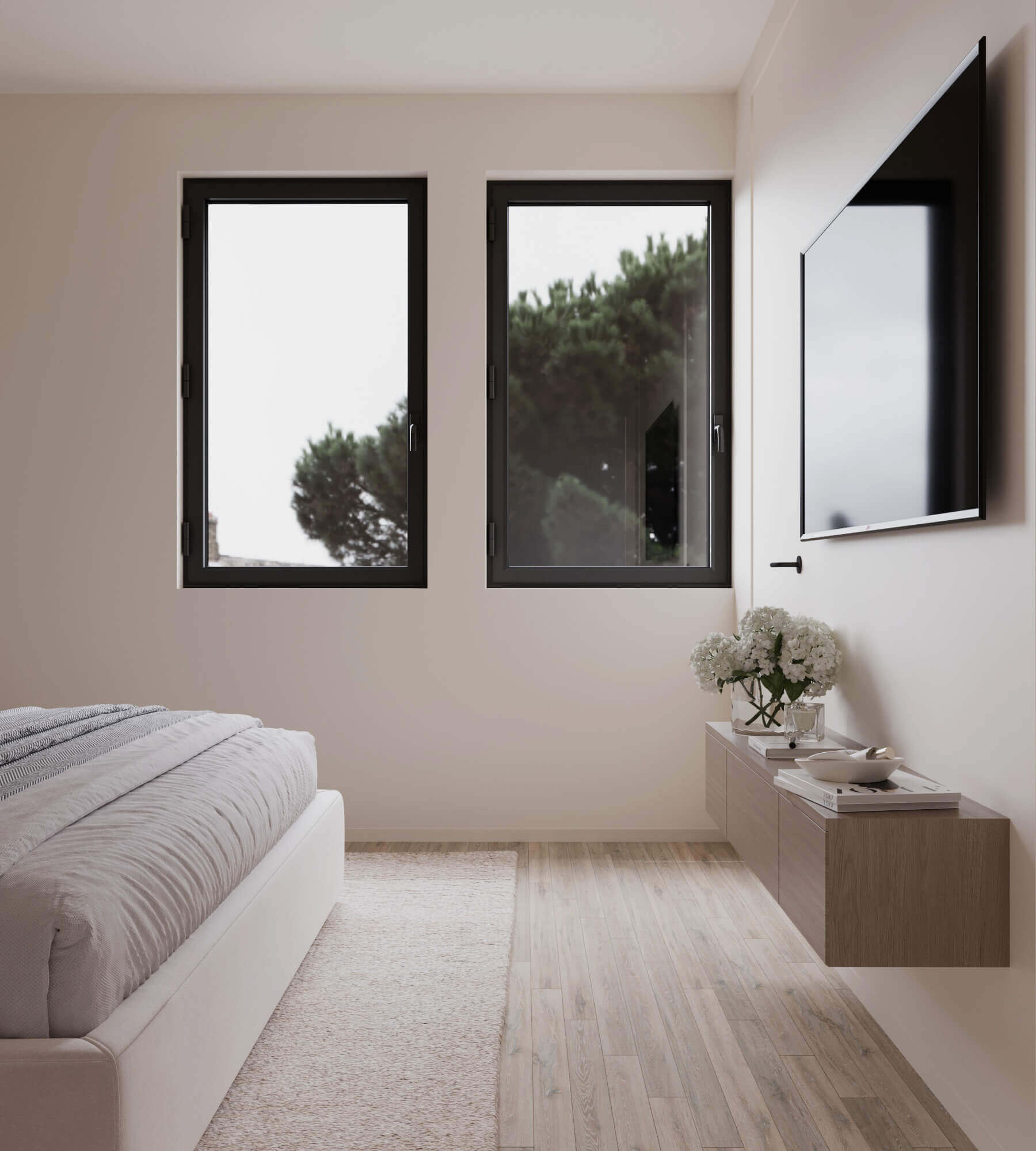 • Okna – stolarka PCV z pakietem trzyszybowym, zapewniającym świetną izolację termiczną i akustyczną.