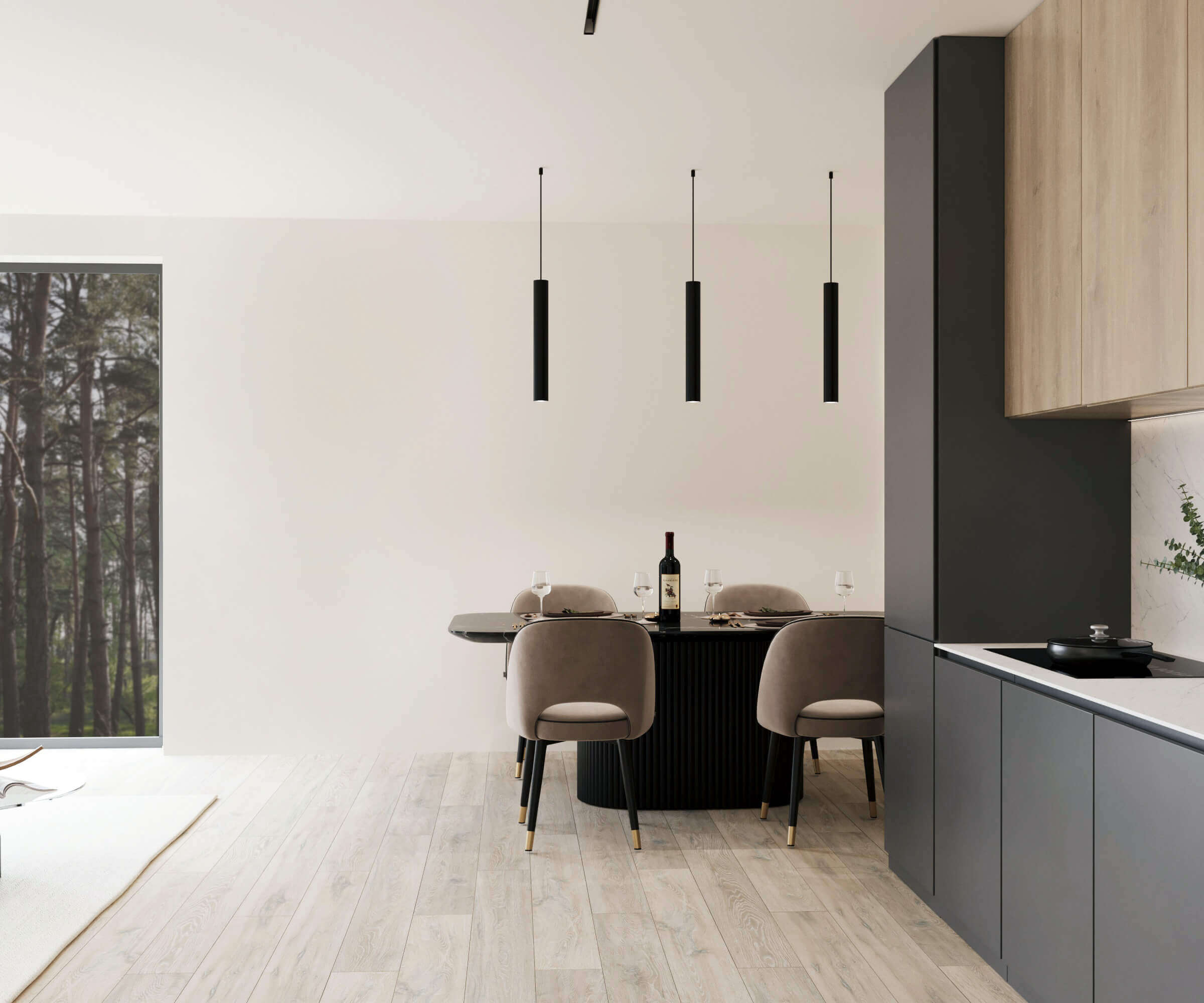 Wnętrza domów w inwestycji Domy pod Świerkami zostały zaprojektowane tak, aby stworzyć solidną bazę do własnej aranżacji, a jednocześnie zapewnić nowoczesne i energooszczędne rozwiązania technologiczne.