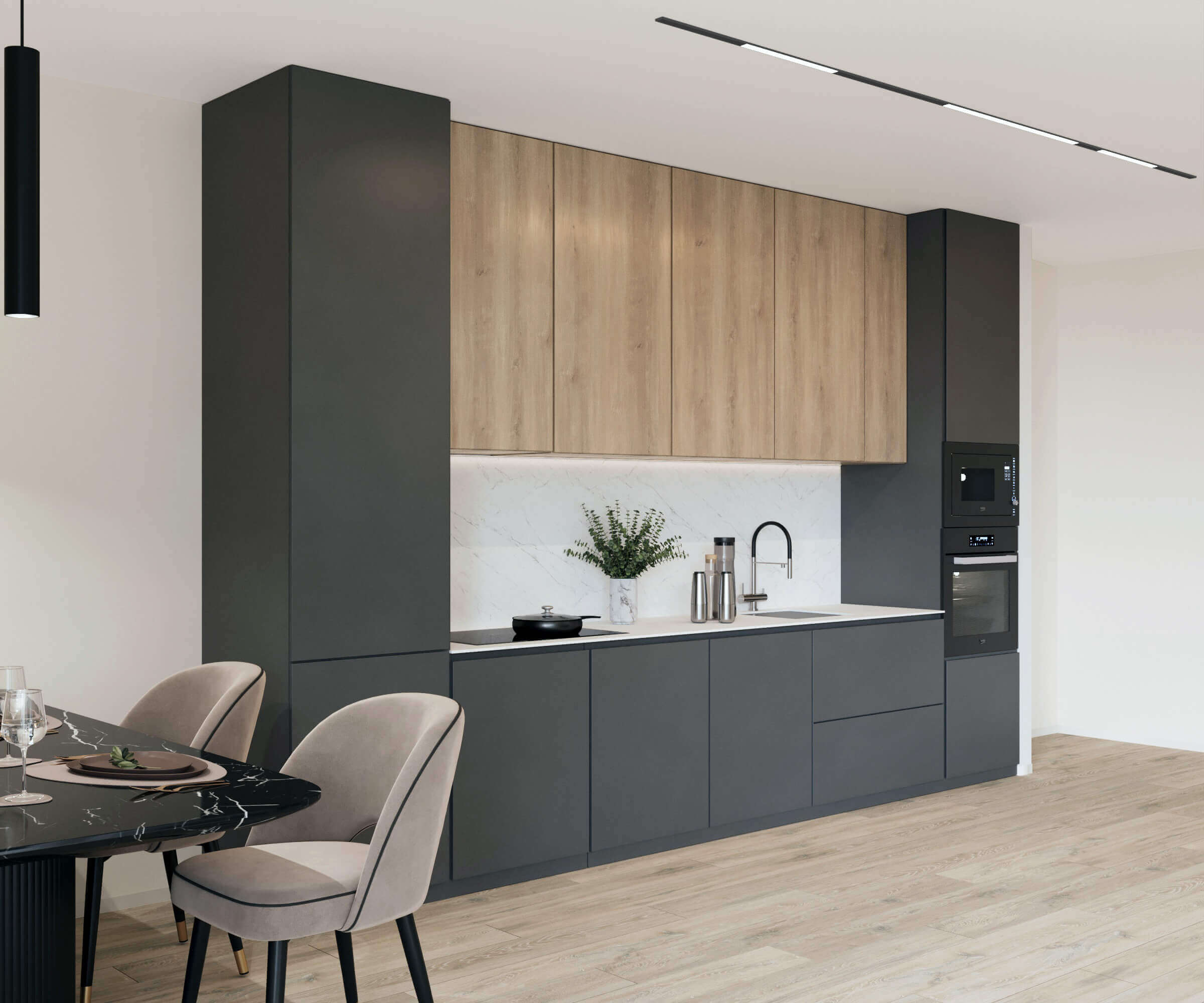 Nowoczesna architektura budynków harmonijnie wpisuje się w otoczenie, a funkcjonalne układy pomieszczeń zapewniają komfort zarówno singlom, parom, jak i rodzinom z dziećmi. Przestronne wnętrza dają możliwość swobodnej aranżacji, a duże przeszklenia gwarantują doskonałe doświetlenie naturalnym światłem.