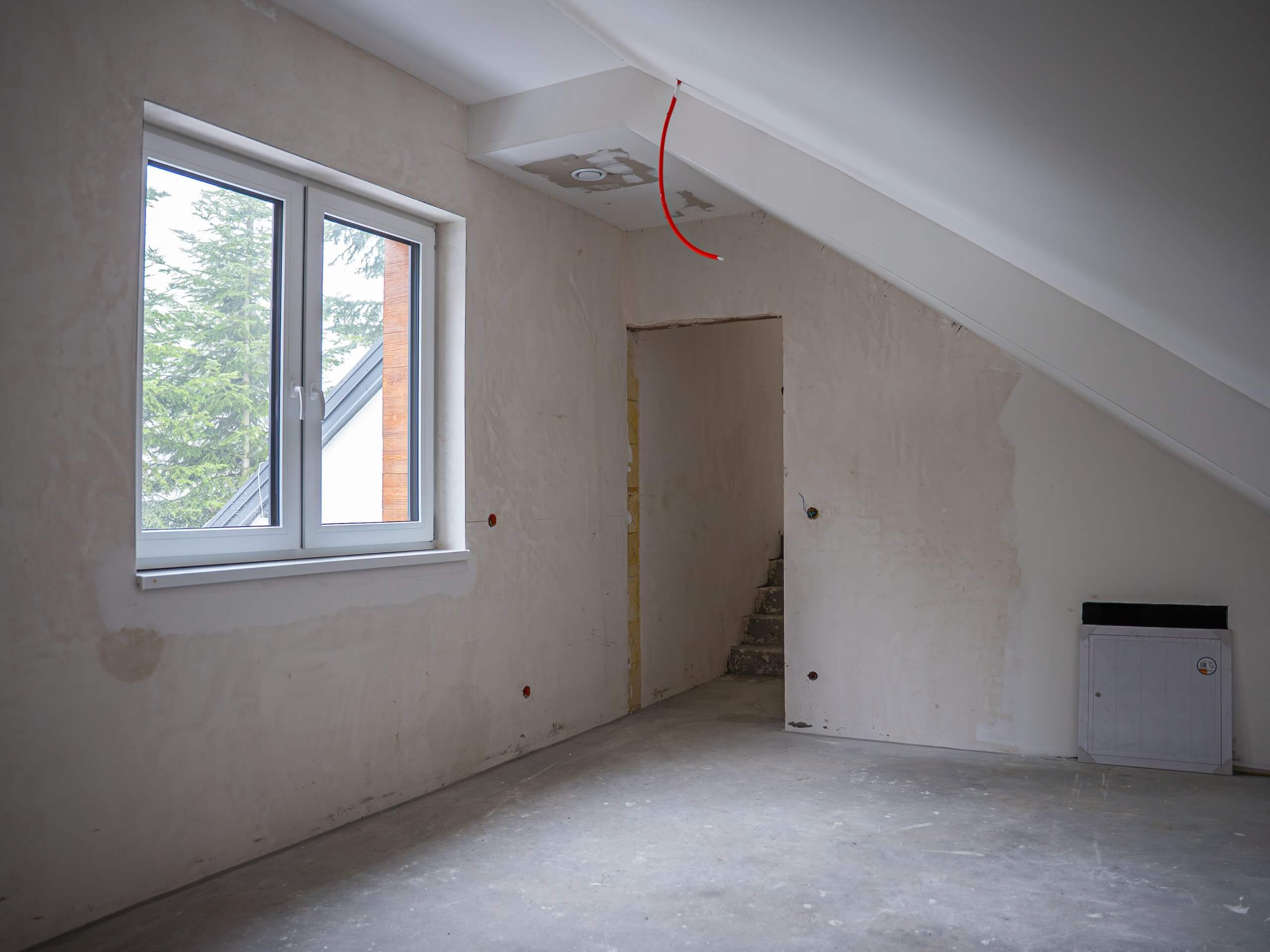 • Sufity – na poddaszu wykonane w systemie podwieszanym z płyt GK na stelażu.